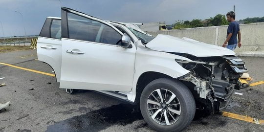 Dalam postingan sama, digambarkan kondisi mobil yang ringsek di bagian depan, dan bagian atap.