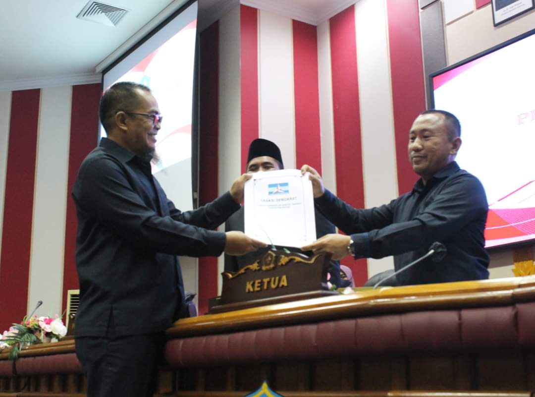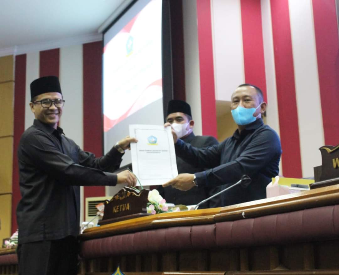 Paripurna pengesahan dua Ranperda tersebut dipimpin oleh Ketua DPRD Kabupaten Bintan Agus Wibowo, didampingi Wakil Ketua DPRD Bintan Fiven Sumanti dan Wakil Ketua Agus Hartanto. Paripurna dihadiri Sekda Bintan Adi Prihantara, Plt Sekwan Riang Anggraini, anggota DPRD Bintan serta sejumlah kepala OPD di lingkungan Pemkab Bintan.