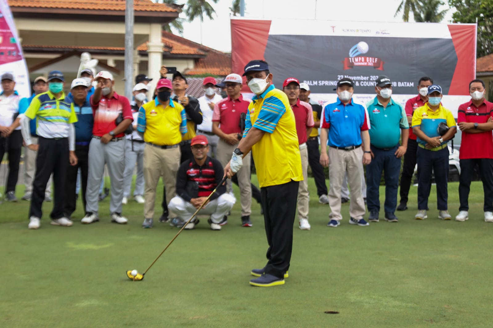 METROBATAM.COM|TANJUNGPINANG – Gubernur Provinsi Kepri H. Ansar Ahmad didampingi Ketua TP PKK Provinsi Kepri Hj. Dewi Kumalasari Ansar membuka Tempo Golf Tournament 2021 di Palm Spring Golf Nongsa, Kota Batam, Sabtu (27/11). Turnamen golf yang dilaksanakan oleh PT. Tempo Inti Media Harian ini ditandai pembukaannya dengan pemukulan bola asap oleh Gubernur Kepri