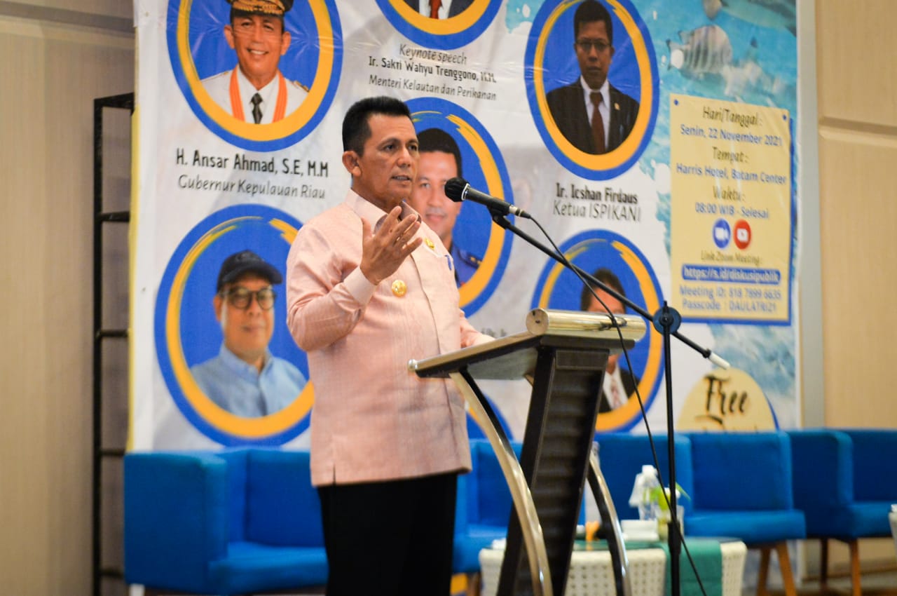 Gubernur Ansar hadir membuka secara resmi acara Diskusi Publik dengan tema Pengelolaan Perikanan untuk Mendukung Industrialisasi di Wilayah Pengelolaan Perikanan (WPP 711) dalam Rangka menjaga Kedaulatan Republik Indonesia, Senin (22/11) di Hotel Harris Batam Center, Batam.