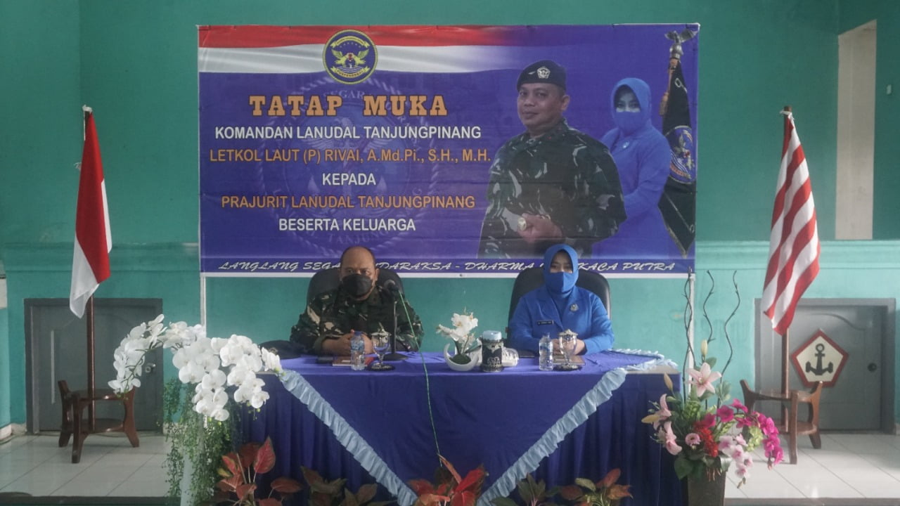 METROBATAM.COM|TANJUNGPINANG – Komandan Lanudal Tanjungpinang,Letkol Laut (P) Rivai ,A.Md.Pi.,S.H.,M.H, didampingi Ibu Ketua Cabang 5 Korcab I, Puspenerbal menggelar kegiatan tatap muka bersama seluruh Prajurit dan PNS Lanudal Tanjungpinang serta anggota Jalasenastri Cabang 5 Korcab I Puspenerbal di gedung DACOTA (GOR ) Mako Lanudal Tanjungpinang, Selasa (02/11).
