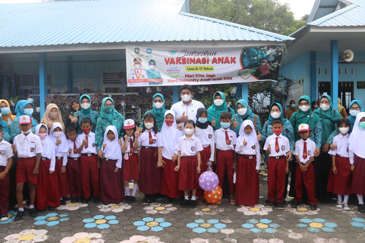 “Ya kita tinjau langsung dan memastikan pelaksanaan vaksinasi massal lancar dan tepat sasaran. Alhamdulillah 500 anak usia umur 6-11 tahun untuk kecamatan Toapaya siap divaksin,” tutur ketua PKK Kepri Hj Dewi Kumalasari.