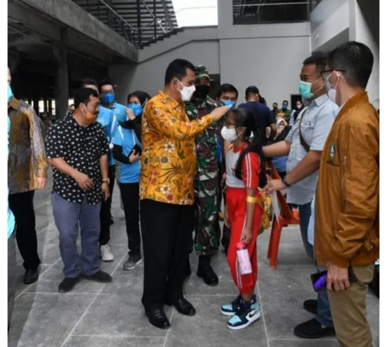 METROBATAM.COM|TANJUNGPINANG –Gubernur Kepri H. Ansar Ahmad memanfaatkan waktu luangnya, Minggu (26/12) untuk meninjau pelaksanaan vaksinasi anak umur 6-11 di One Batam Mall, Batam Center. Gelaran vaksinasi anak di mall ini merupakan inisiasi dari Asosiasi Pengusaha Indonesia (APINDO) Kepri dan Badan Intelijen Negara Daerah (Binda) Kepri.