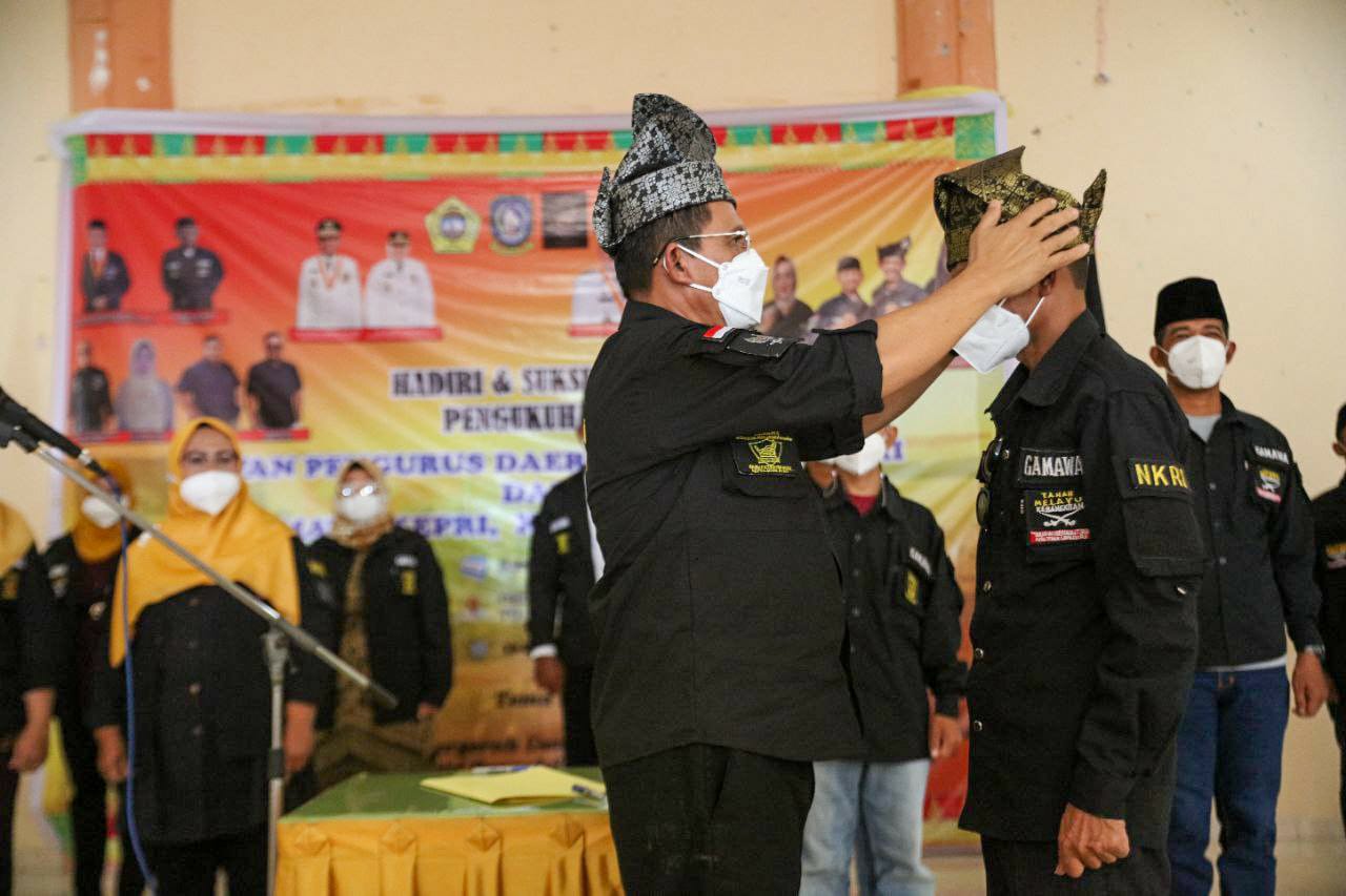 METROBATAM.COM|TANJUNGPINANG – Gubernur Kepulauan Riau H. Ansar Ahmad mengukuhkan sekaligus melantik pengurus daerah Gerakan Penjaga Marwah (GEMAWA) Kepri, Sri GEMAWA Kepri, Koordinator Wilayah (Korwil) dan PAC GEMAWA di gedung Rumpun Melayu Bersatu (RMB) Kabupaten Karimun, Sabtu (4/12/2021).