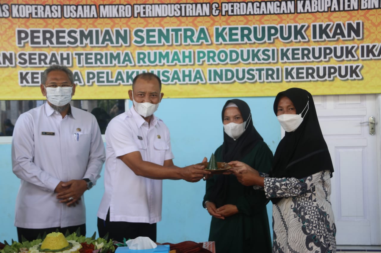 Menindaklanjuti semangat tersebut, Pemerintah Kabupaten Bintan Melalui Dinas Koperasi Usaha Mikro Perindustrian dan Perdagangan melakukan Peresmian Sentra Kerupuk Ikan dan Serah Terima Rumah Produksi Kerupuk Ikan kepada para pelaku usaha industri kerupuk, Rabu (12/021) di Kelurahan Sei Lekop Kecamatan Bintan Timur.