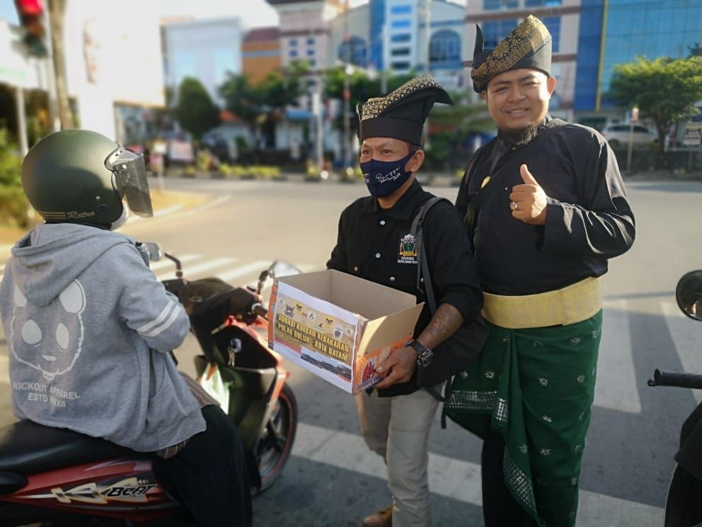 METROBATAM.COM|TANJUNGPINANG – Dengan memakai tanjak dan Baju adat Melayu, Pengurus Generasi Anak Melayu (Geram) Provinsi Kepulauan Riau melakukan Pengalangan Dana di Lampu Lalu Lintas, Bintan Center KM 9, Tanjungpinang, Jumat (28/1/2022) sore.