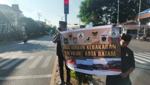 Ketua Umum Geram Kepri, Ariyandi, SE sebagai bentuk kepedulian terhadap korban kebakaran Pulau Buluh Kota Batam.