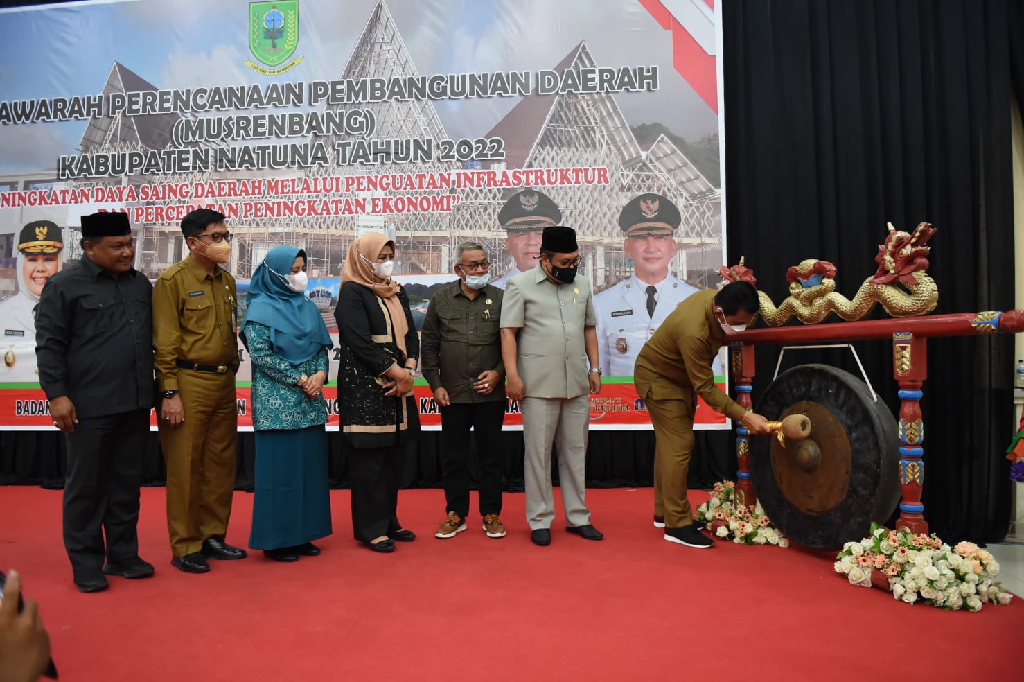 Metrobatam.com|Natuna – Gubernur Kepulauan Riau H. Ansar Ahmad membuka secara langsung Musyawarah Perencanaan Pembangunan (Musrenbang) Kabupaten Natuna di Gedung Sri Serindit, Ranai, Natuna, Senin (21/7). Gubenur hadir pada Musrenbang ini sebagai salah satu rangkaian kegiatan kunjungan kerjanya ke Kabupaten Natuna.