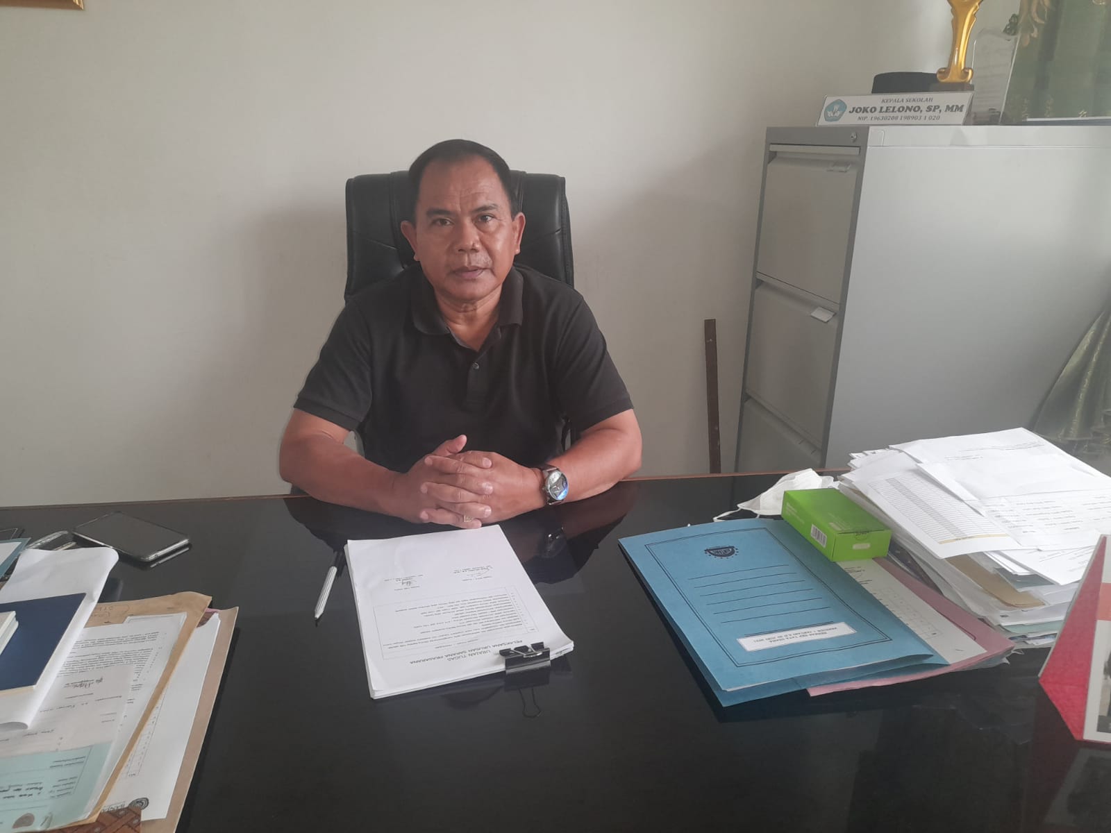 ” ini jawaban kepala sekolah smkn 1 Buntok kepada dua awak media yang menemuinya