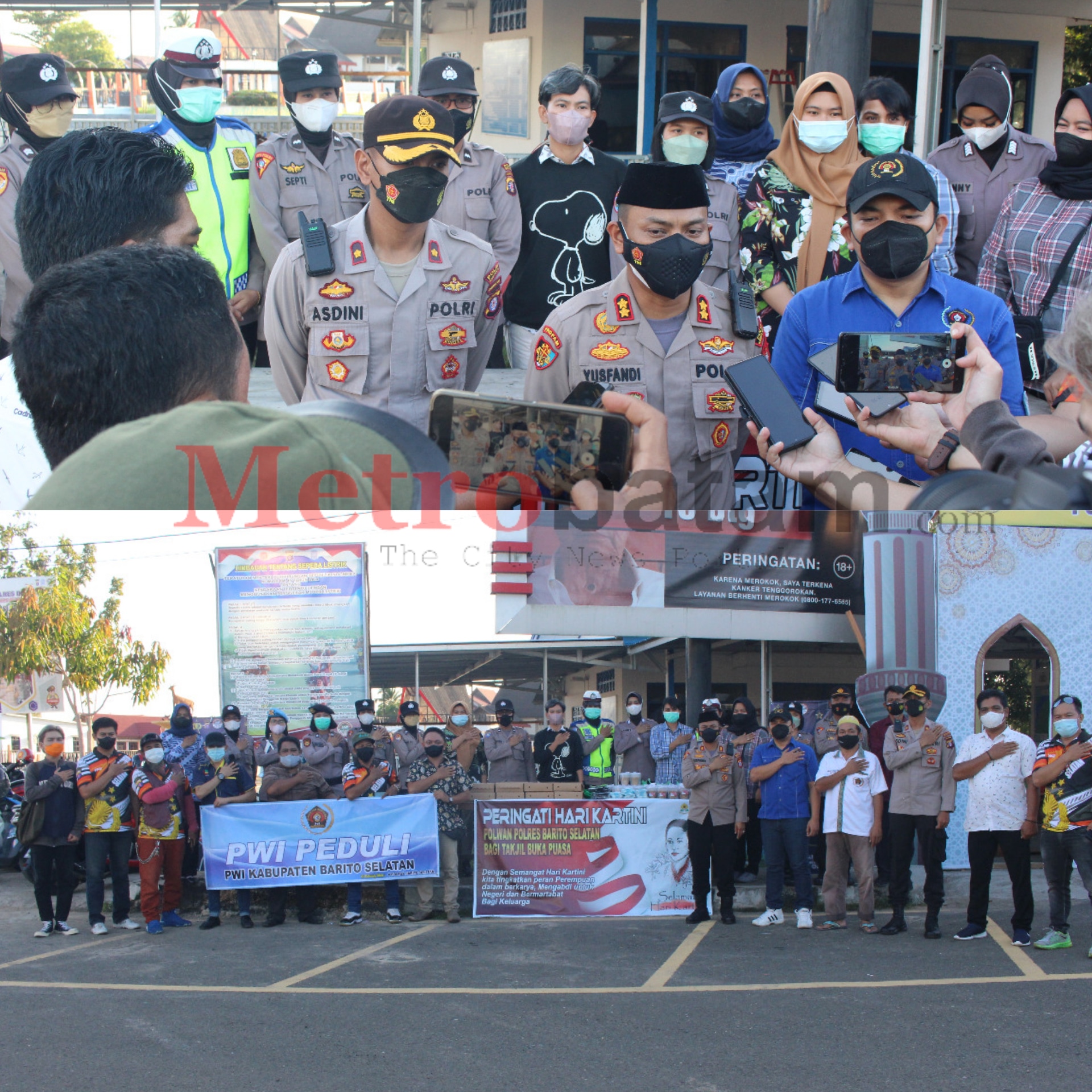 METROBATAM.COM, Buntok – Polres Barito Selatan (Barsel) bersama Persatuan Wartawan Indonesia (PWI) Barsel, melaksanakan bagi takjil. Rabu, 21 April 2022 sore.