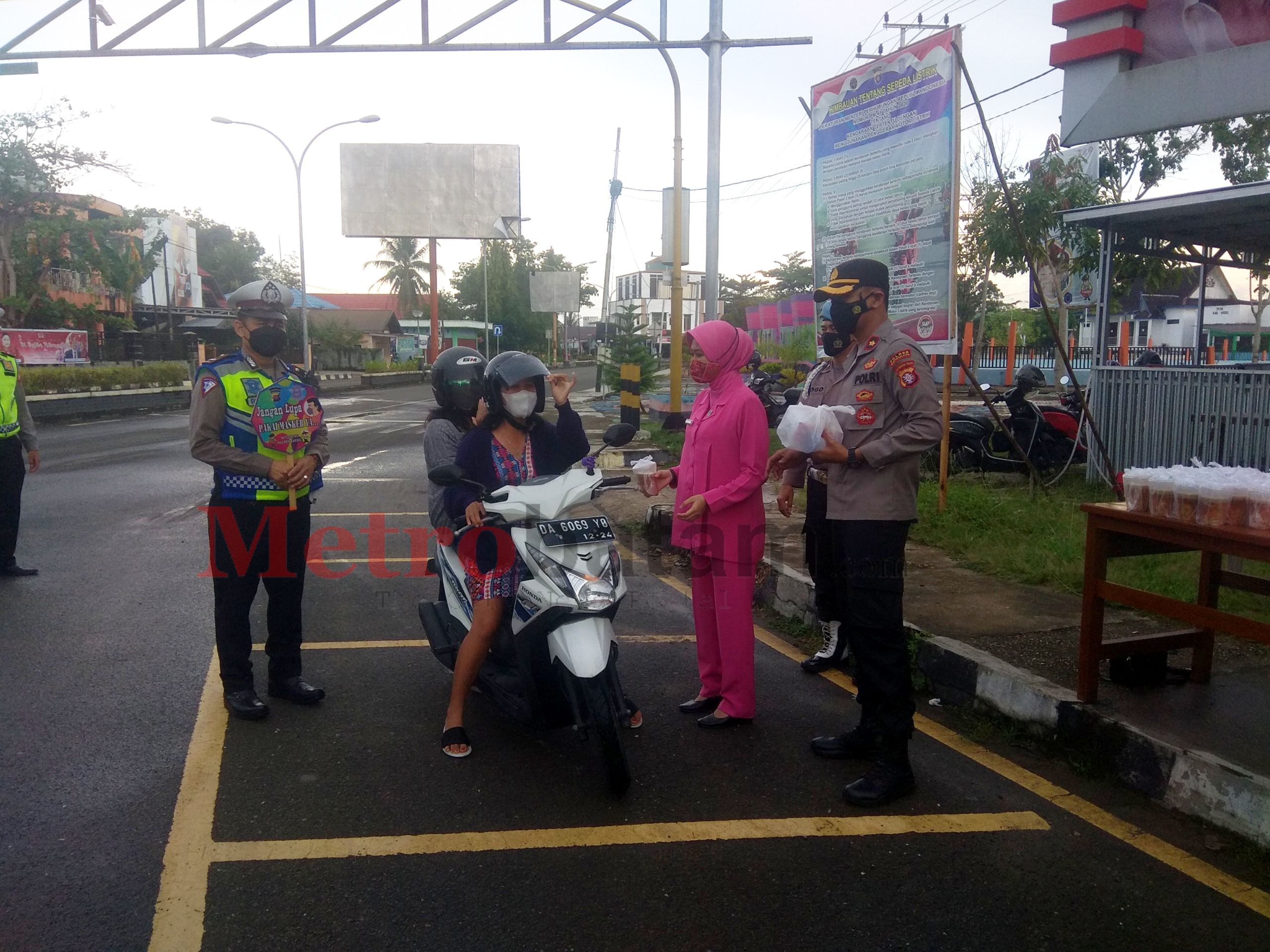 METROBATAM.COM, BUNTOK – Polres Barito Selatan (Barsel) dalam menyambut Bulan Suci Ramadhan melaksanakan pembagian takjil dan masker gratis kepada masyarakat, kegiatan ini di gelar di jalan Pelita Raya simpang 4 didepan pos lantas di Buntok kota yang di pimpin langsung oleh Kapolres Barsel AKBP Yusfandi Usman, S.I.K., M.I.K., Minggu (03/04/2022).