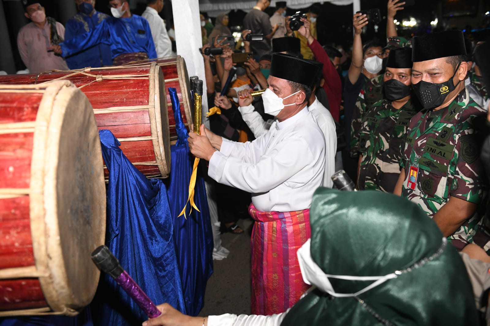Iring-iringan pawai takbir dilepas Gubernur Ansar dan Walikota Tanjungpinang Hj. Rahma ditandai dengan kumandang takbir yang dipimpin Gubernur Ansar dan penabuhan bedug.