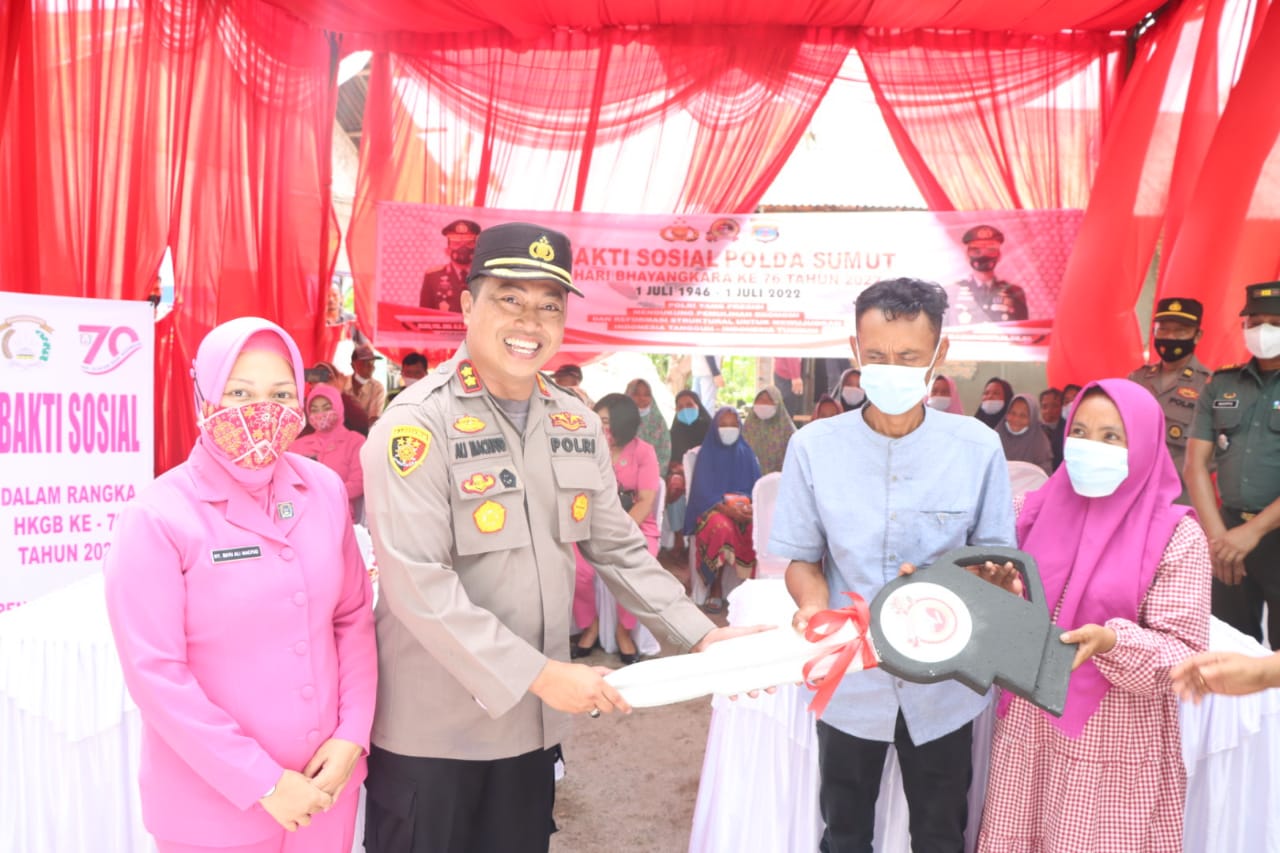 Selanjutnya, Kapolres Serdang Bedagai AKBP Dr. Ali Machfud menyerahkan Bantuan Sosial Secara Simbolis Bedah Rumah milik Saibah (43)warga jalan Selamat Dusun 3 Desa Firdaus, Kecamatan Seirampah-Sergai