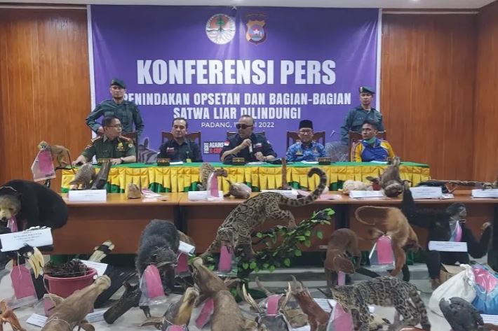 Sustyo diamankan bersama barang bukti berupa 30 jenis bagian tubuh satwa yang dilindungi Undang-Undang. “Pelaku selanjutnya diamankan dan diperiksa oleh Penyidik Gakkum LHK, sedangkan barang bukti dititipkan dan dilakukan identifikasi jenis oleh Balai KSDA Sumatera Barat,” kata Sustyo di Padang, Jumat (17/6/2022).
