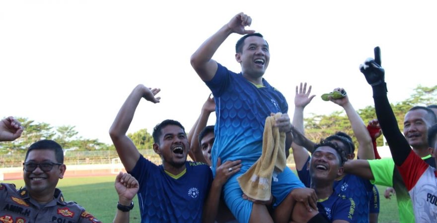 Lima pemain Polresta Barelang FC menjalankan tugasnya dengan baik. Kepiawaian penjaga gawang Polresta Barelang FC berhasil membawa timnya menang dalam laga adu pinalti setelah menepis sepakan pemain Bid Propam Polda Kepri.