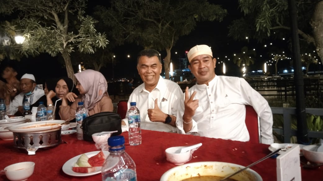 Meluapkan rasa syukur dan rasa gembiranya, Wan Siswandi menggelar makan malam bersama dengan seluruh rombongan jamaah haji Natuna di Houbarbay, restoran wey wey Batam.