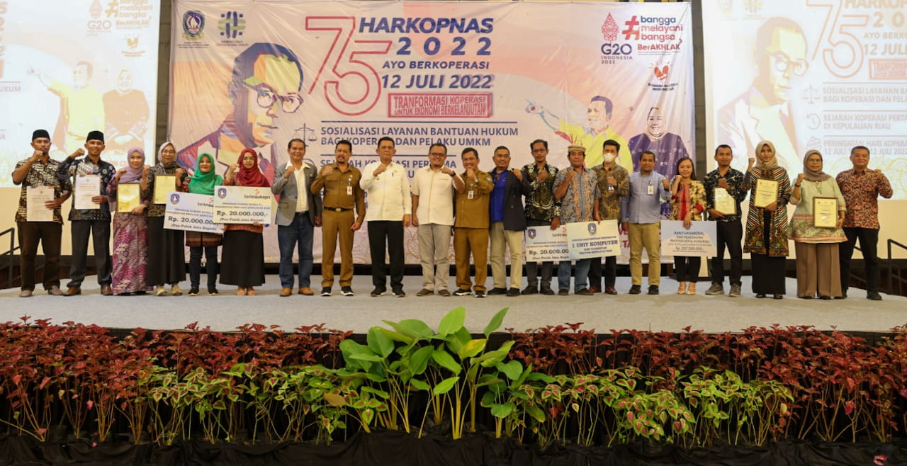 Peringatan Hari Koperasi Nasional Ke-75 yang bertema “Transformasi Koperasi Untuk Ekonomi Berkelanjutan” ini juga disejalankan dengan penyerahan bantuan pembuatan akte notaris untuk koperasi, bantuan sertifikat halal bagi UMKM, bantuan permodalan Bank Riau Kepri, bantuan 1 unit komputer bagi koperasi berprestasi dan penghargaan bagi tenaga pendamping berprestasi.