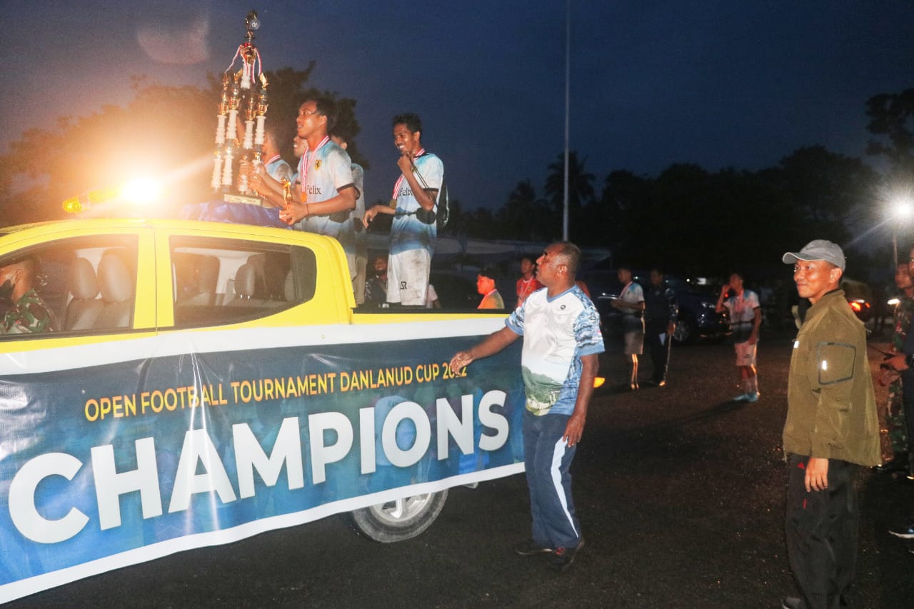 Perhelatan bergengsi Danlanud Cup 2022 kali ini dimeriahkan dengan pawai keliling merayakan kemenangan tim. Start dari Lanud RSA langsung Kota Tua Penagi sebagai markas tim dengan membawa trofi bergilir Danlanud Cup 2022.
