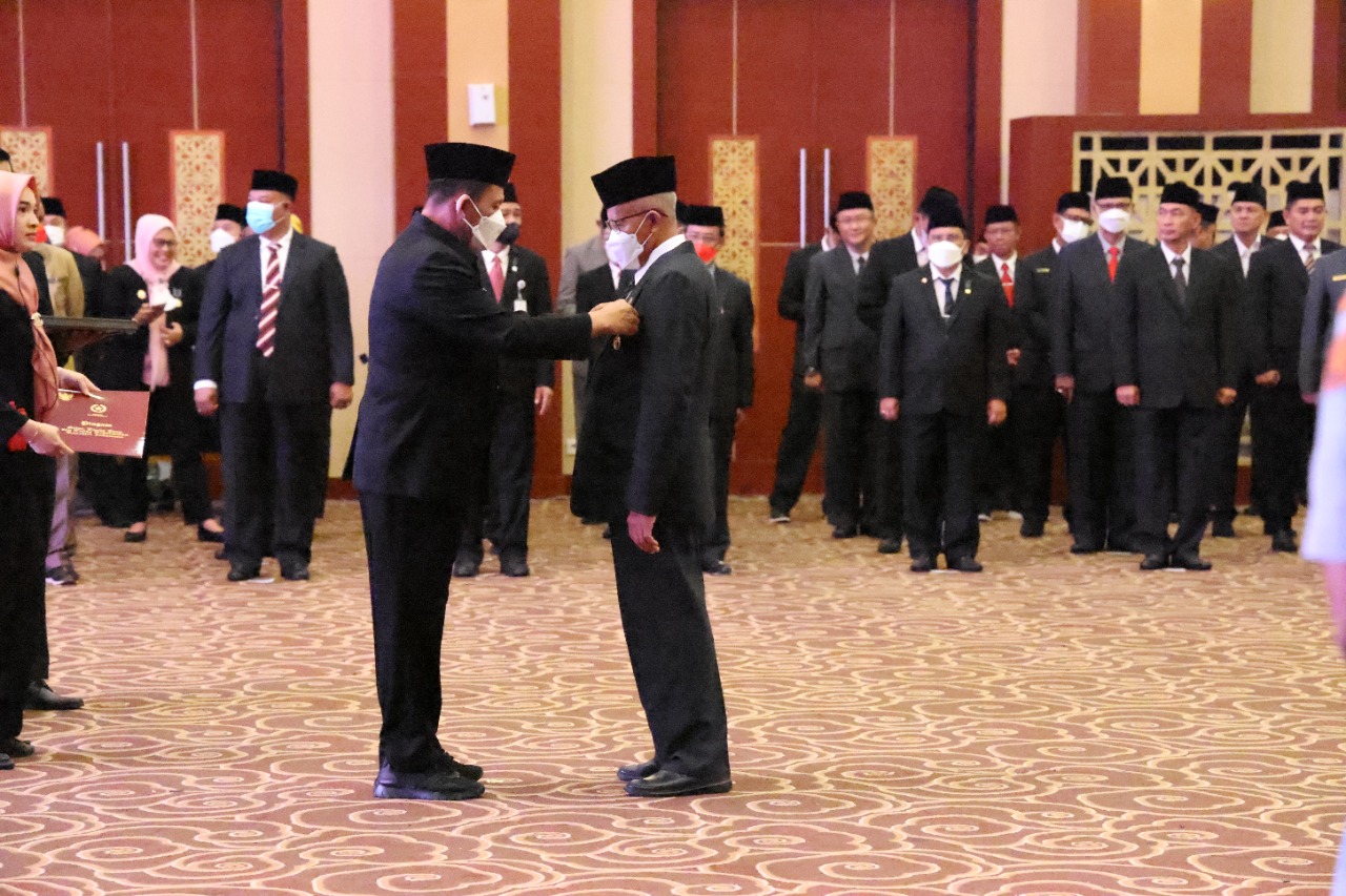 Metrobatam.com|Tanjungpinang – Sebanyak 35 Aparatur Negeri Sipil (ASN) Pemerintah Provinsi Kepulauan Riau menerima Anugerah Tanda Kehormatan Satyalancana Karya Satya dari Pemerintah Republik Indonesia di Aula Wan Seri Beni, Dompak, Tanjungpinang, Senin (15/08). Penyematan tanda kehormatan Satyalancana Karya Satya dilakukan langsung oleh Gubernur Kepulauan Riau H. Ansar Ahmad.