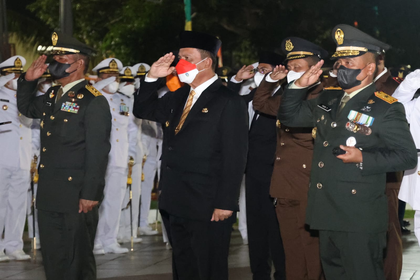 Metrobatam.com|Tanjungpinang-Sebagai tanda penghormatan terhadap jasa para pahlawan, Gubernur Kepulauan Riau H. Ansar Ahmad beserta Forkompimda Kepri melakukan upacara Apel Kehormatan dan Renungan Suci di Taman Makam Pahlawan Pusara Bhakti, Tanjungpinang, Rabu dini hari (17/08).