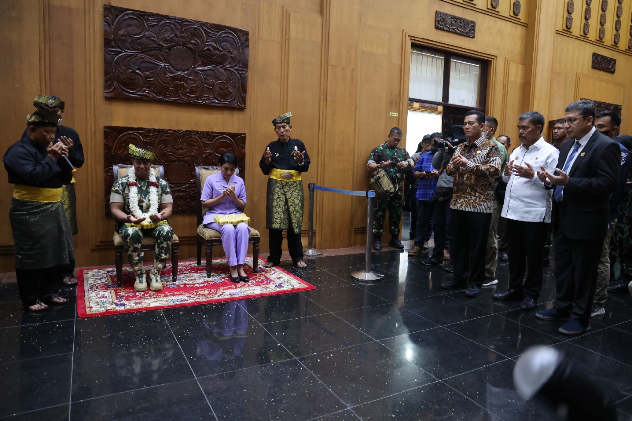 Metrobatam.com|Tanjungpinang – Gubernur Kepulauan Riau H. Ansar Ahmad menyambut langsung kedatangan Panglima TNI Jenderal TNI Andika Perkasa beserta Ibu Hetty Andika Perkasa di Bandara Raja Haji Fisabilillah, Tanjungpinang, Kamis (4/8). Ketibaan Jenderal TNI Andika Perkasa beserta istri disuguhi dengan prosesi adat istiadat Melayu.