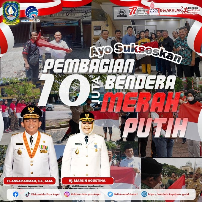 Metrobatam.com|Tanjungpinang – Pemerintah Provinsi Kepri sangat mendukung ‘Gerakan Pembagian 10 Juta Bendera Merah Putih’ yang diselenggarakan oleh Kementerian Dalam Negeri Republik Indonesia berdasarkan surat nomor : 003.1/4397/SJ tanggal 29 Julu 2022, dalam rangka menyemarakkan Peringatan Hari Ulang Tahun Ke-77 Kemerdekaan Republik Indonesia.