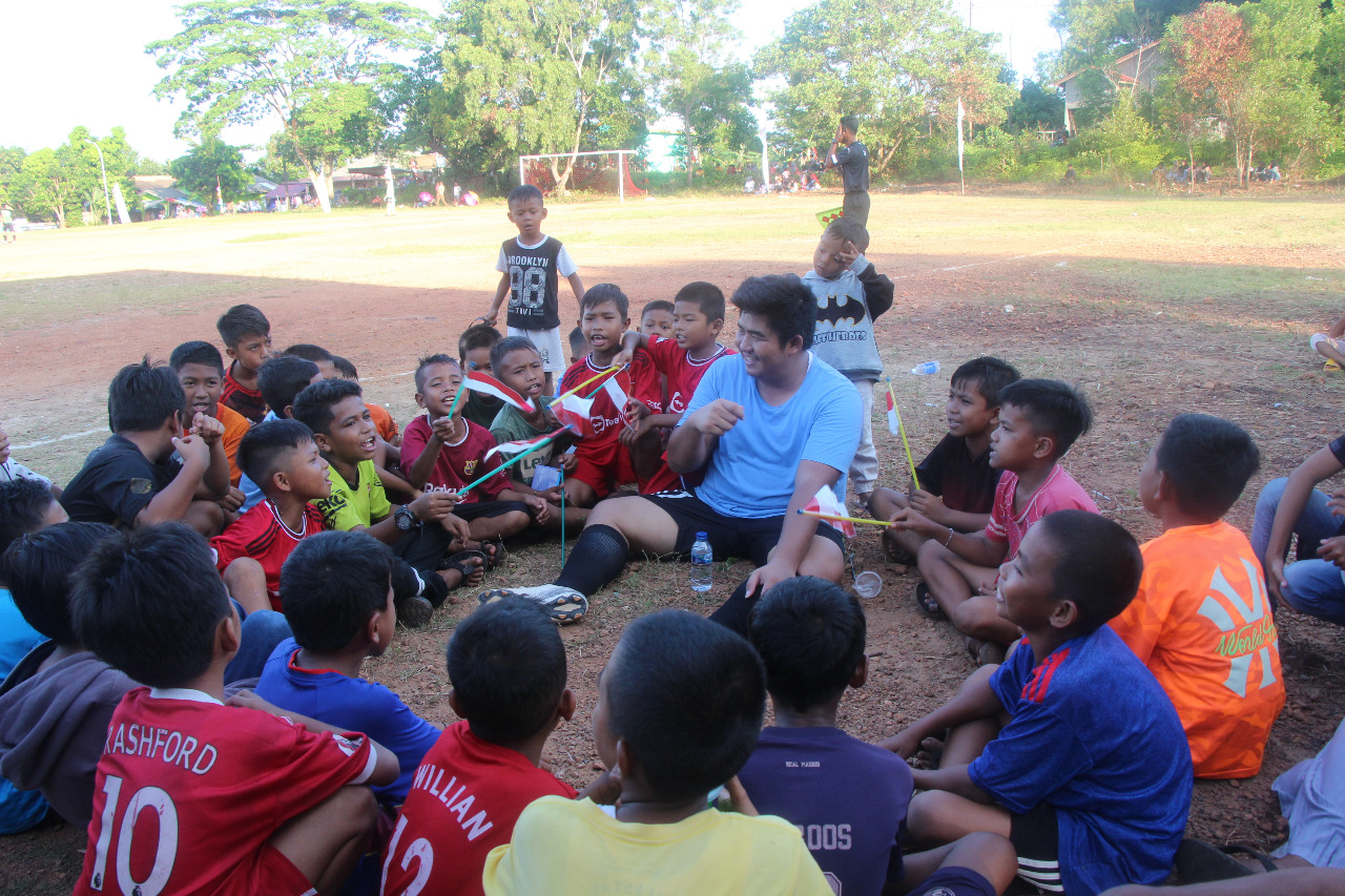 Hal ini pula lah yang terlihat saat Plt Bupati Bintan Roby Kurniawan berkunjung ke Pulau Kelong (Desa Kelong), Rabu (10/08). Berlesehan bersama anak-anak di pinggir Lapangan Kelong, Roby tampak sangat bahagia mengekspresikan bulan kemerdekaan dengan bernyanyi lagu nasional.