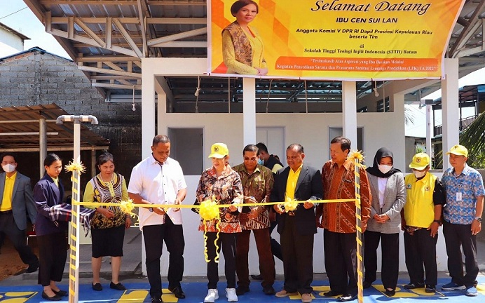 METROBATAM.COM|BATAM – Anggota Dewan Perwakilan Rakyat Republik (DPR – RI), Komisi V, Fraksi Partai Golkar, Cen Sui Lan (CSL) meresmikan sarana dan prasarana sanitasi Lembaga Pendidikan Keagamaan (LPK) Sekolah Tinggi Theologi Injili Indonesia (STII) Batam, Kamis (27/10/2022). Pembangunan sarana dan prasarana sanitasi (MCK) LPK STTII Batam ini berasal dari dana aspirasi Cen Sui Lan dengan nilai mencapai Rp200 juta.