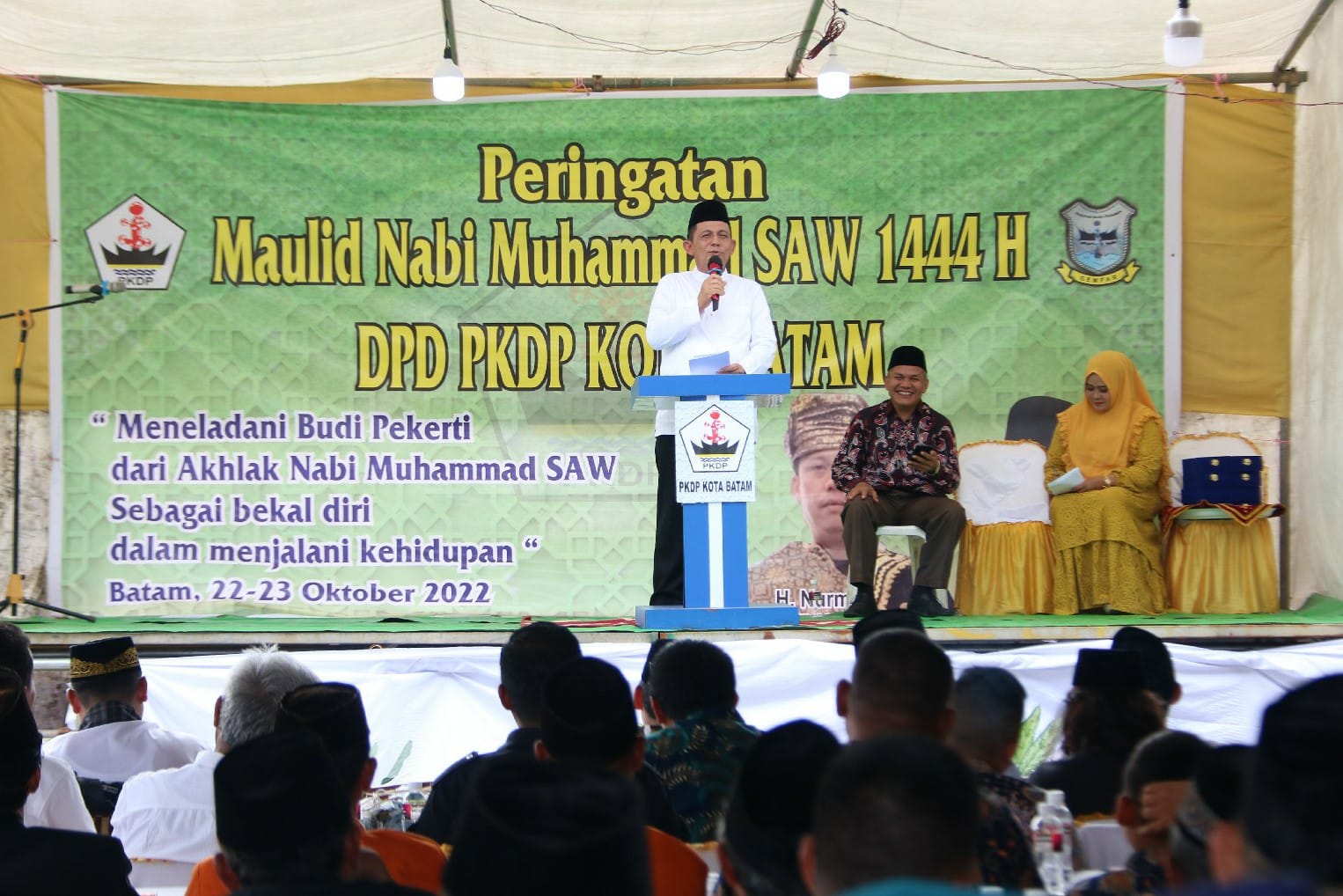 Metrobatam.com|Batam – Gubernur Kepulauan Riau H. Ansar Ahmad menghadiri peringatan Maulid Nabi Muhammad SAW 1444 H / 2022 M yang diselenggarakan oleh DPD Persatuan Keluarga Daerah Piaman (PKDP) Kota Batam di Masjid Babbusalam Bengkong Indah II, Batam, Minggu (23/10).