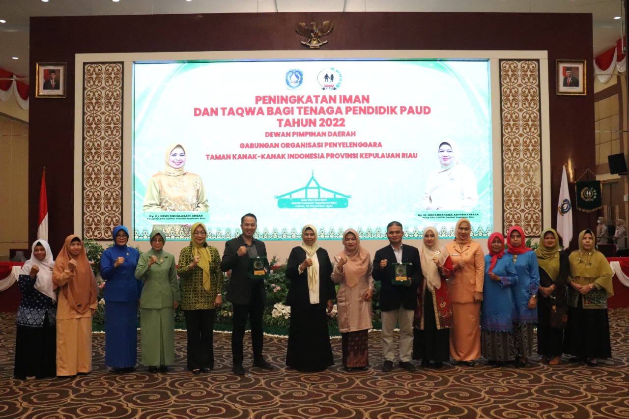 Metrobatam.com|Tanjungpinang – Penasehat Dewan Pimpinan Daerah (DPD) Gabungan Organisasi Penyelenggara Taman Kanak-Kanak Indonesia (GOPTKI) Kepri Hj. Dewi Kumalasari Ansar resmi membuka Kegiatan Peningkatan Iman dan Taqwa bagi Para Tenaga Pendidik Paud di Provinsi Kepulauan Riau tahun 2022.