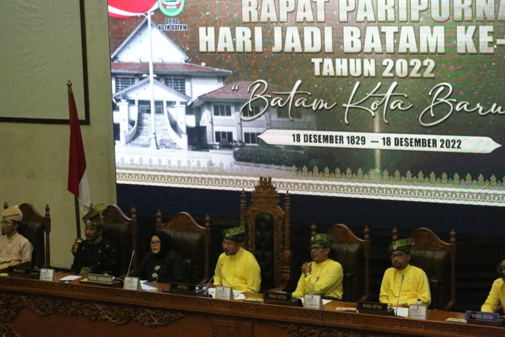 METROBATAM.COM, BATAM – Dewan Perwakilan Rakyat Daerah (DPRD) Kota Batam menggelar Rapat Paripurna Istimewa dalam rangka Hari Jadi Kota Batam ke-193, Minggu (19/12/2022). Ketua DPRD Kota Batam Nuryanto SH MH yang memimpin langsung rapat paripurna dengan tema ” Batam Kota Baru”. Minggu (18/12/2022).