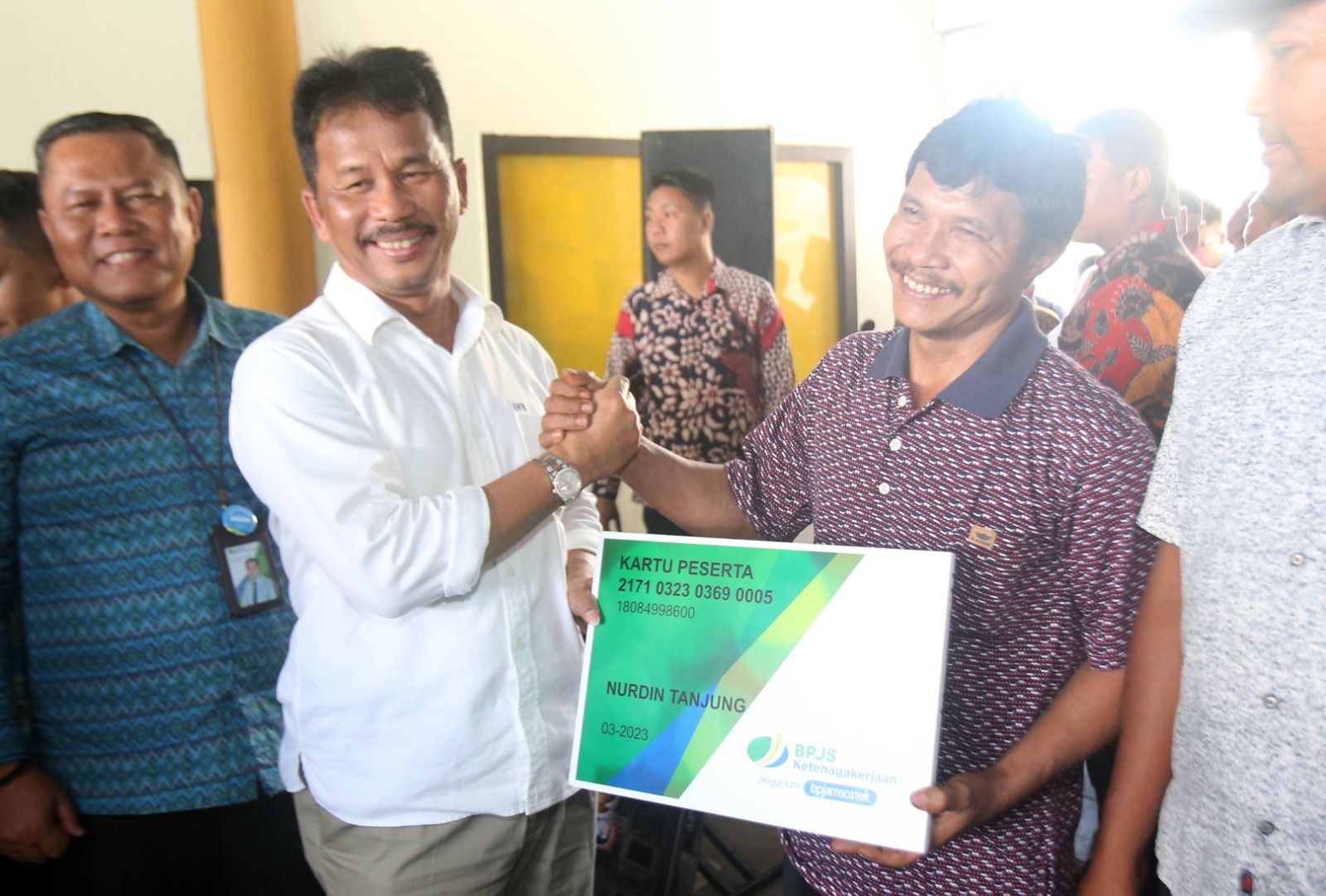 METROBATAM.COM, BATAM – Wali Kota Batam Muhammad Rudi menyerahkan Kartu Jaminan Sosial Ketenagakerjaan bagi nelayan kecil Kota Batam Tahun 2023 di Kantor Camat Sagulung, Kamis (16/3/2023).