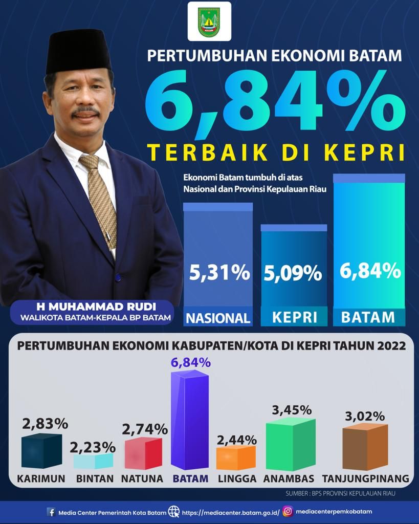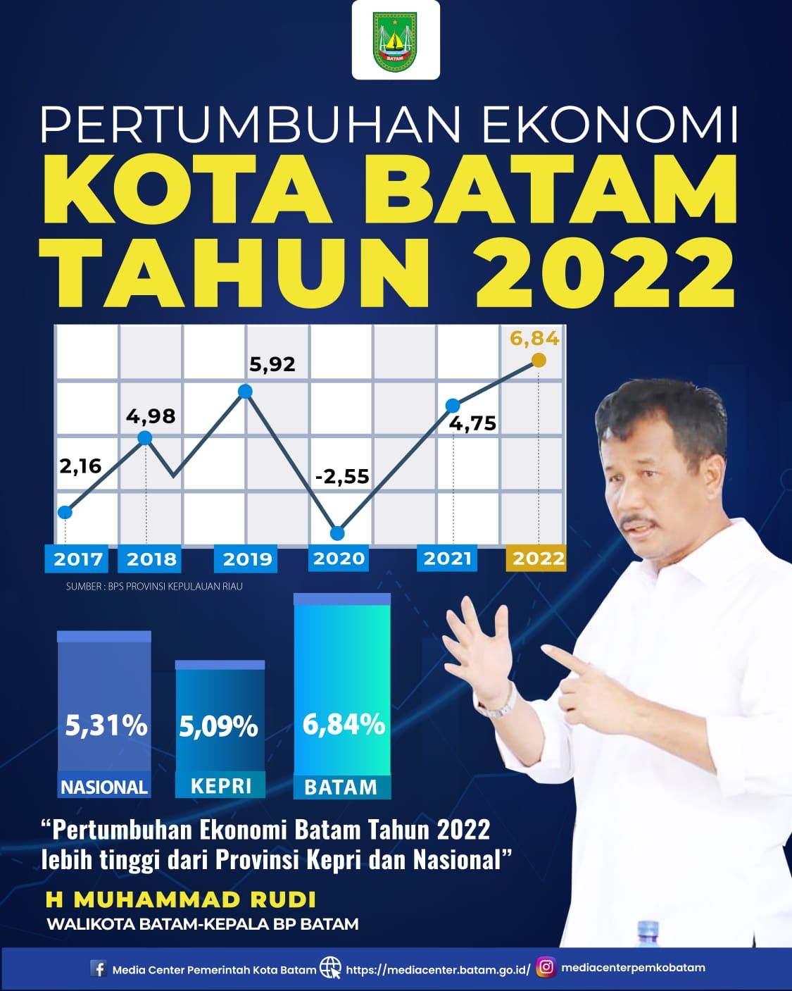 Sesuai data Badan Pusat Statistik (BPS) Kota Batam, ekonomi Batam tumbuh 6,84 persen pada 2022.