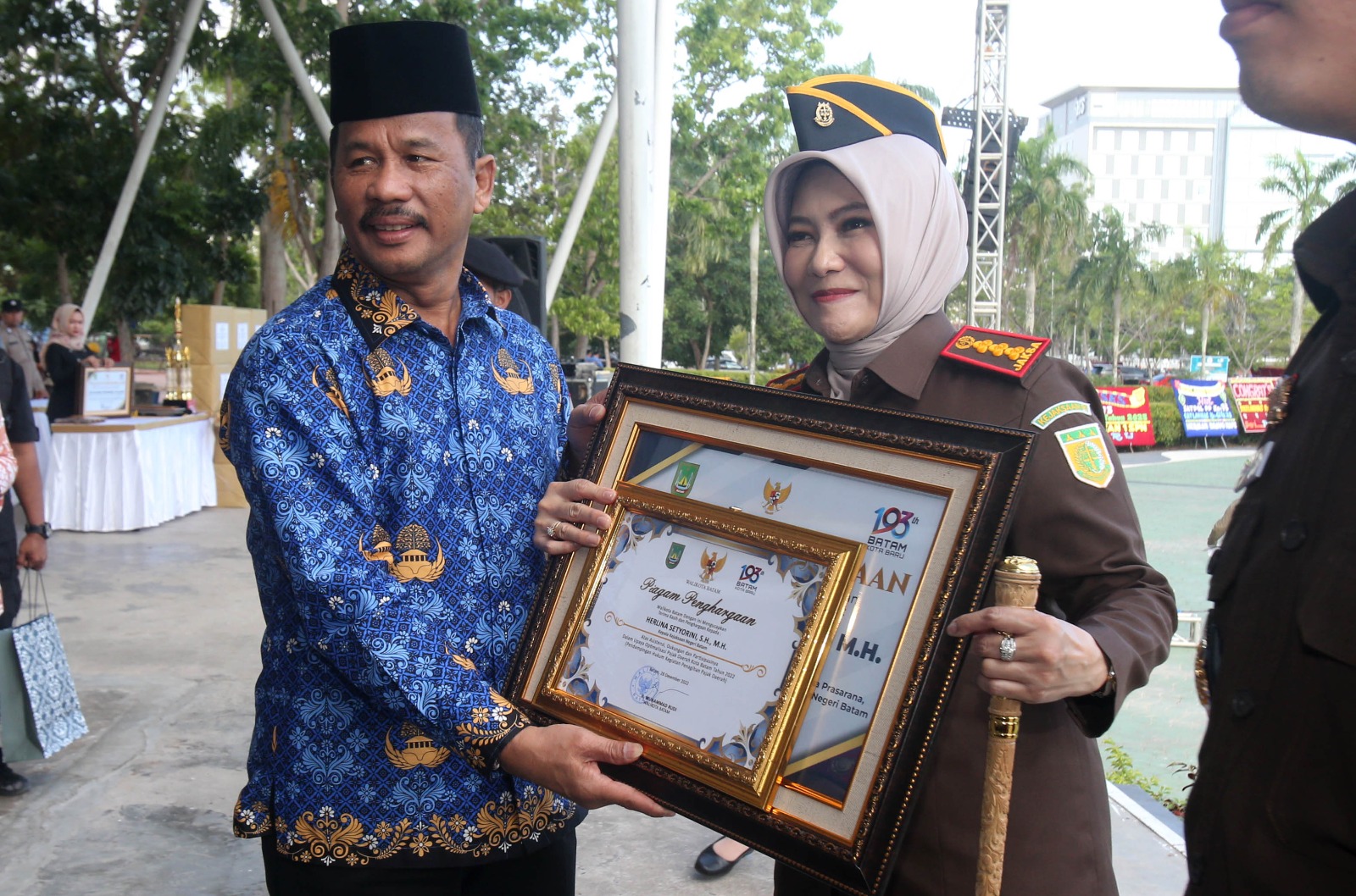 Bertindak sebagai inspektur upacara, Kepala Kejaksaan Negeri (Kajari) Kota Batam Herlina Setyorini. Seluruh pimpinan dan perwakilan Forum Komunikasi Pimpinan Daerah (Forkopimda) hadir dalam upacara ini.