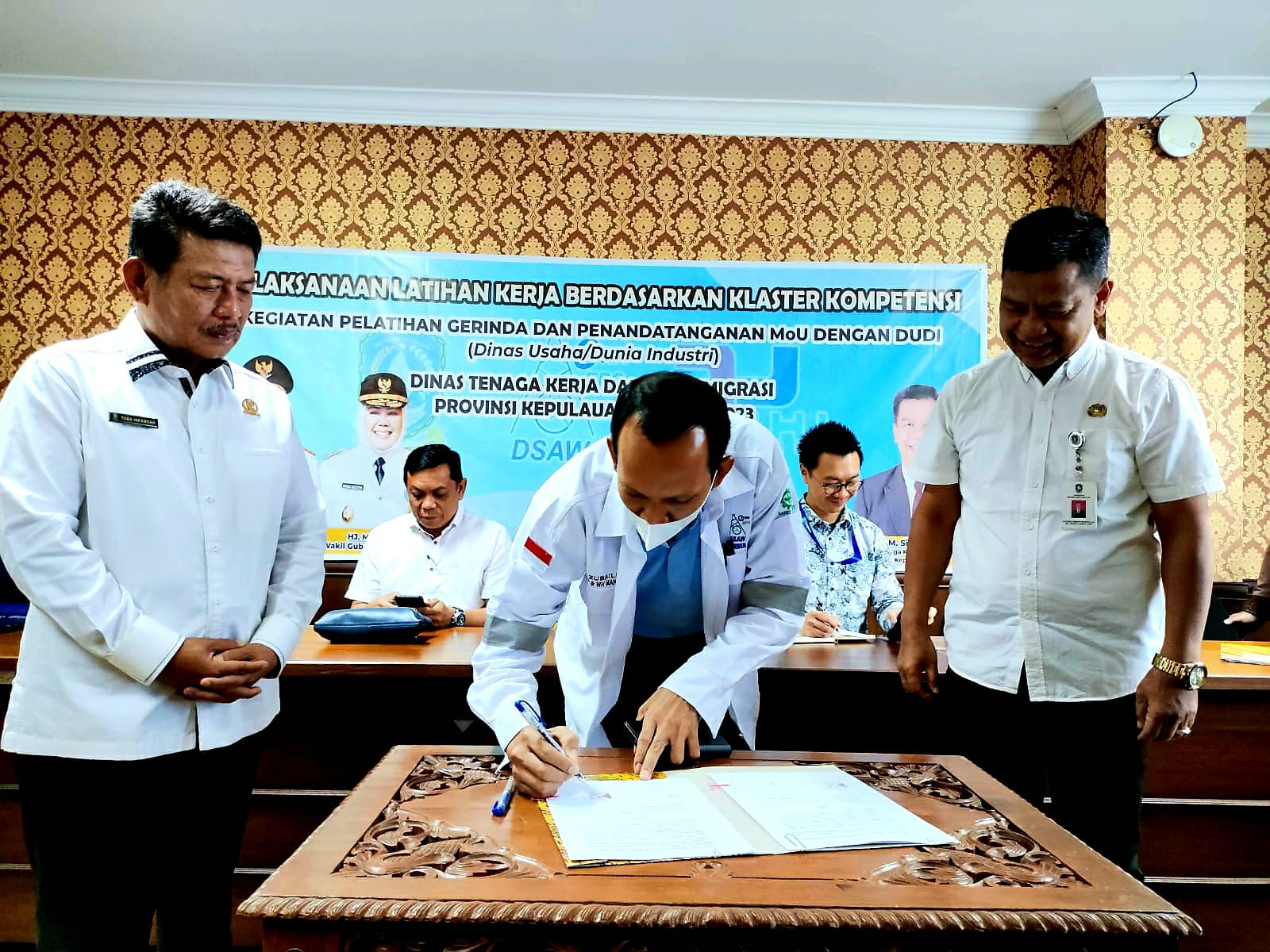 Acara juga disejalankan dengan penandatanganan MoU tentang pelatihan pengembangan SDM, instruktur, penempatan dan sertifikasi tenaga kerja antara Dunia Industri/Dunia Usaha dengan Kepala Dinas Tenaga Kerja Provinsi Kepri Mangara Simarmata.