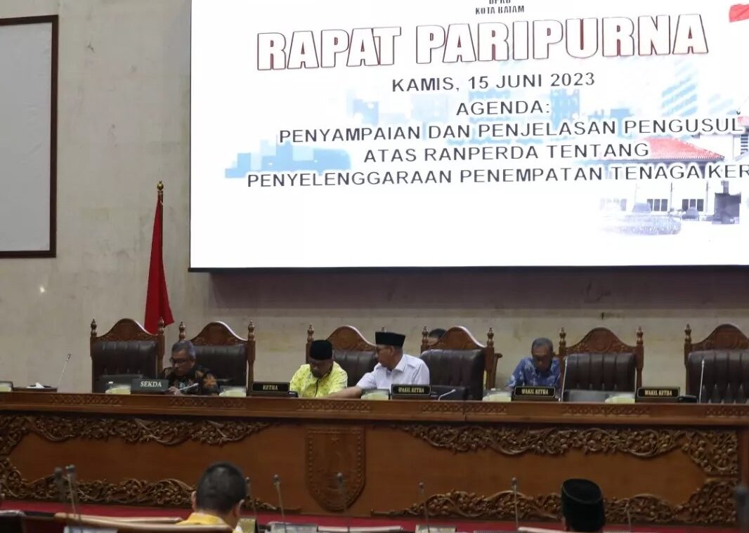 METROBATAM.COM, BATAM – Guna mengurangi ketergantungan terhadap tenaga kerja luar daerah dan tenaga kerja asing (TKA), Badan Pembentukan Peraturan Daerah (Bapemperda) Kota Batam beri usulan Rancangan Peraturan Daerah (Ranperda) dalam sidang paripurna ke-4 masa persidangan III tahun sidang 2023, di Kantor Dewan Perwakilan Rakyat Daerah (DPRD) Kota Batam, Kamis (15/6/2023).