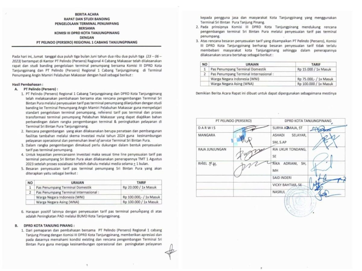 Metrobatam.com|Tanjungpinang – Sehubungan dengan pemberitaan terhadap rencana PT. Pelindo (Persero) Regional 1 Cabang Tanjungpinang akan menaikkan tarif pas Pelabuhan Sri Bintan Pura (SBP) Tanjungpinang, per 1 Agustus 2023 mendatang. Dimana sebelumnya tarif pas Pelabuhan sebesar Rp.5.000 naik menjadi Rp.10.000, dan rencananya akan kembali naik menjadi Rp.15.000,-.
