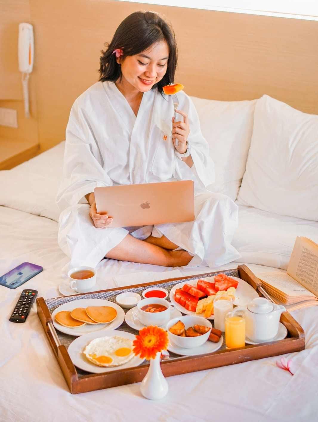“Tujuan sarapan di kamar adalah tidak perlu bersiap-siap atau berdandan untuk menuju restoran untuk menikmati sarapan hotel bintang 4 dan mengganggu waktu santai mu. Sarapan akan diantar ke kamar mu sehingga bisa dinikmati tanpa harus keluar kamar” ujar Chandra selaku Food & Beverage Manager Harris Resort Waterfront Batam, Selasa (29/8/2023).