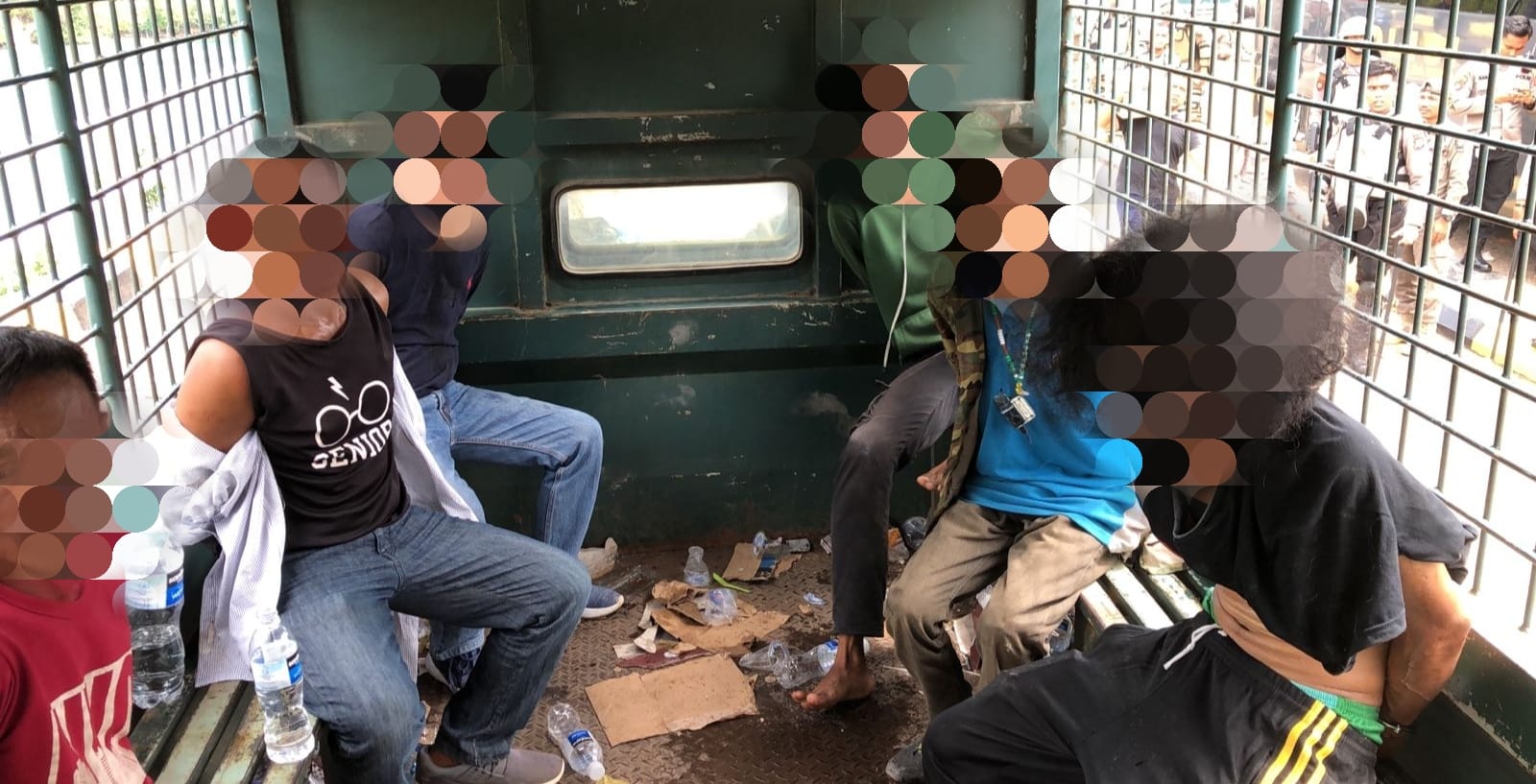 “Petugas juga mengamankan bom molotov, ketapel, parang dan batu. Terhadap 8 orang yang kami amankan ini disangkakan Pasal 212, 213, 214 KUHPidana dan Pasal 2 ayat 1 Undang-Undang Darurat Nomor 12 Tahun 1951 dengan ancaman hukuman kurungan 8 tahun penjara,” sebutnya.