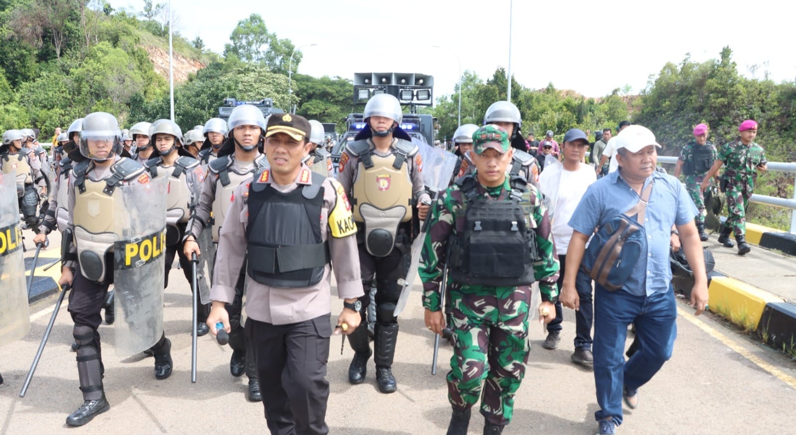 “Saya tekankan, apabila ada menemukan orang yang melanggar hukum pemblokiran jalan, mengancam atau melawan petugas termasuk pelanggaran hukum, disitu negara harus hadir dan tidak boleh kalah dengan orang atau sekelompok seperti itu,” tegas Kapolresta Barelang.