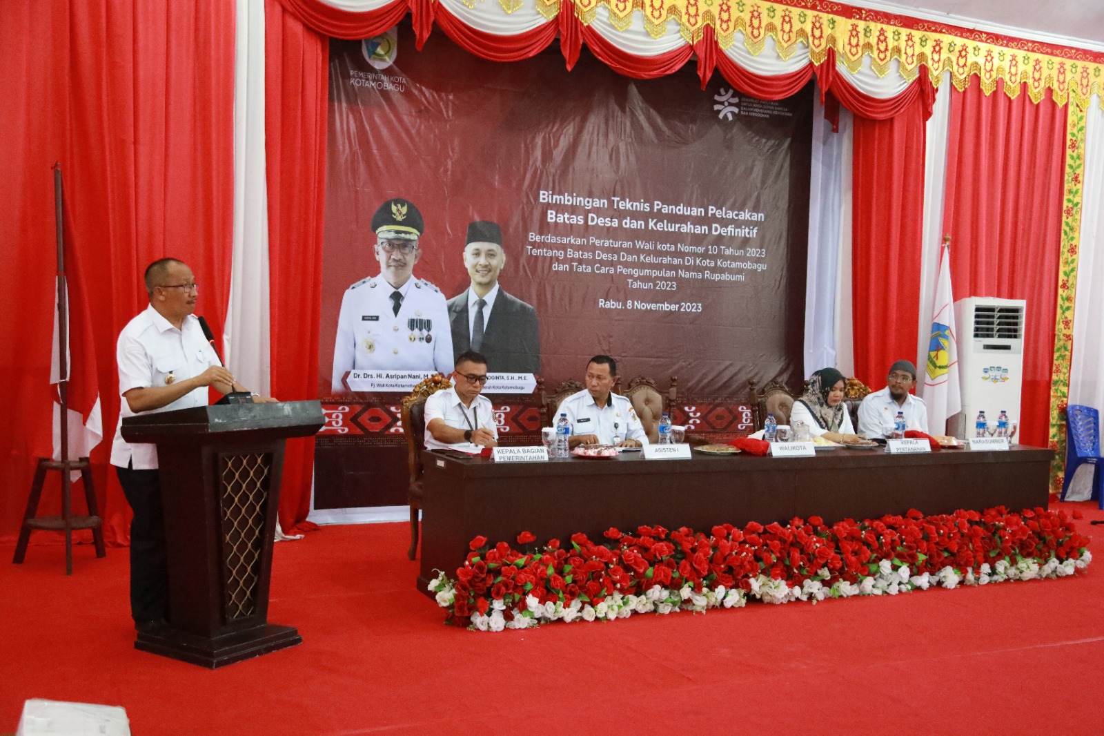 KOTAMOBGAU, METROBATAM.COM – Penjabat (Pj) Wali Kota Dr. Drs. Hi. Asripan Nani, M.Si, membuka kegiatan Bimbingan Teknis (Bimtek) Panduan Pelacakan Batas Desa Kelurahan Definitif Berdasarkan Perwa Nomor 10 Tahun 2023 tentang Batas Desa dan Kelurahan di Kota Kotamobagu dan Tata Cara Pengumpulan Nama Rupabumi Tahun 2023.