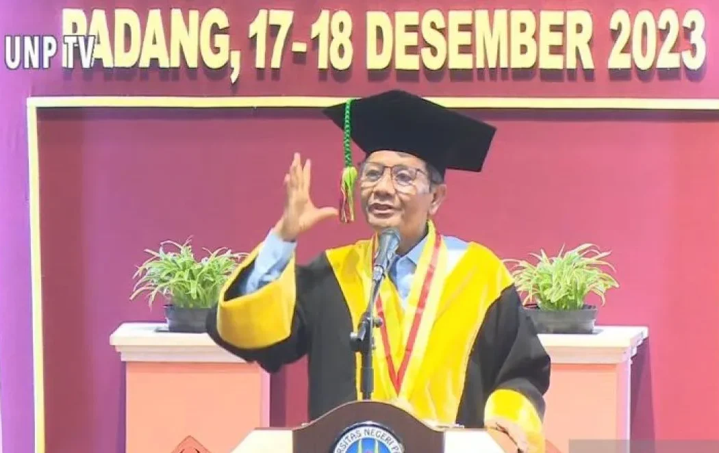 Kepada wisudawan Universitas Negeri Padang, Mahfud menyampaikan setiap lulusan patut berbangga karena sektor pendidikan Indonesia semakin maju. Berkaca pada tahun 1970, cukup sulit menemukan individu yang menyandang gelar sarjana.