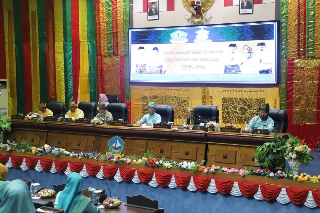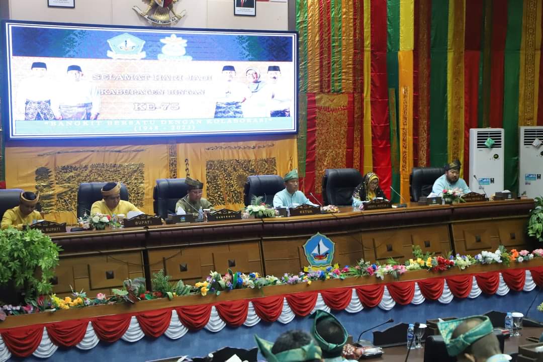 Metrobatam.com|Bintan – Dewan Perwakilan Rakyat Daerah (DPRD) Kabupaten Bintan menggelar rapat paripurna istimewa peringatan hari jadi ke-75 Kabupaten Bintan, di ruang sidang paripurna DPRD Kabupaten Bintan, Bandar Seri Bentan, Jum’at (1/12/2023) pagi.