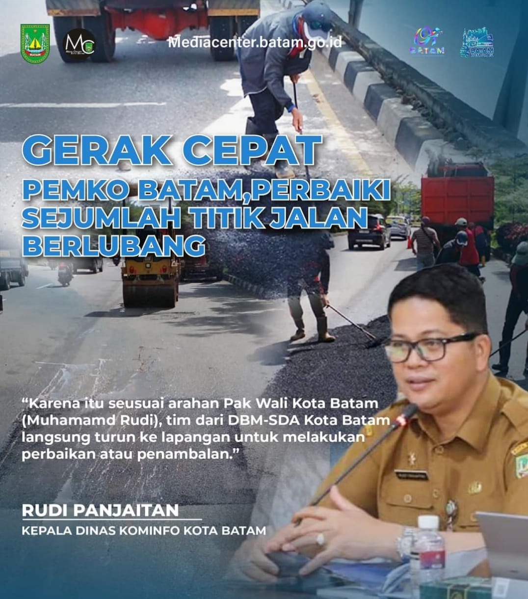 “Karena itu sesuai arahan Pak Wali Kota Batam (Muhamamd Rudi), tim dari DBM-SDA Kota Batam langsung turun ke lapangan untuk melakukan perbaikan atau penambalan,” kata Rudi Panjaitan, Senin (8/1/2024).