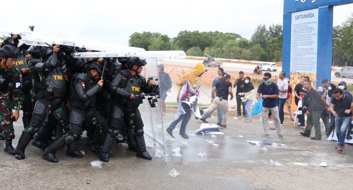 “Tadi yang kita peragakan adalah diperumpamakan ada sekelompok pendukung yang menerima atau mendukung hasil dari pemilihan umum, dan di sisi lain ada satu kelompok yang memang menolak hasil dari pemilu. Tujuannya melatih kemampuan prajurit, agar benar-benar memahami cara bertindak dalam mengantisipasi atau menghadapi terjadinya huru-hara bersifat anarkis apabila terjadi dalam pelaksanaan pesta demokrasi tahun ini,” ungkapnya.