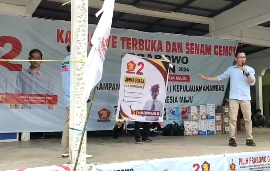 “Terimakasih kepada seluruh masyarakat yang telah hadir. Saya yakin semua yang mengikuti acara ini ialah pendukung Prabowo-Gibran,” kata Ketua Gerindra Anambas yang juga menjabat sebagai Ketua Komisi I DPRD Kabupaten Kepulauan Anambas.