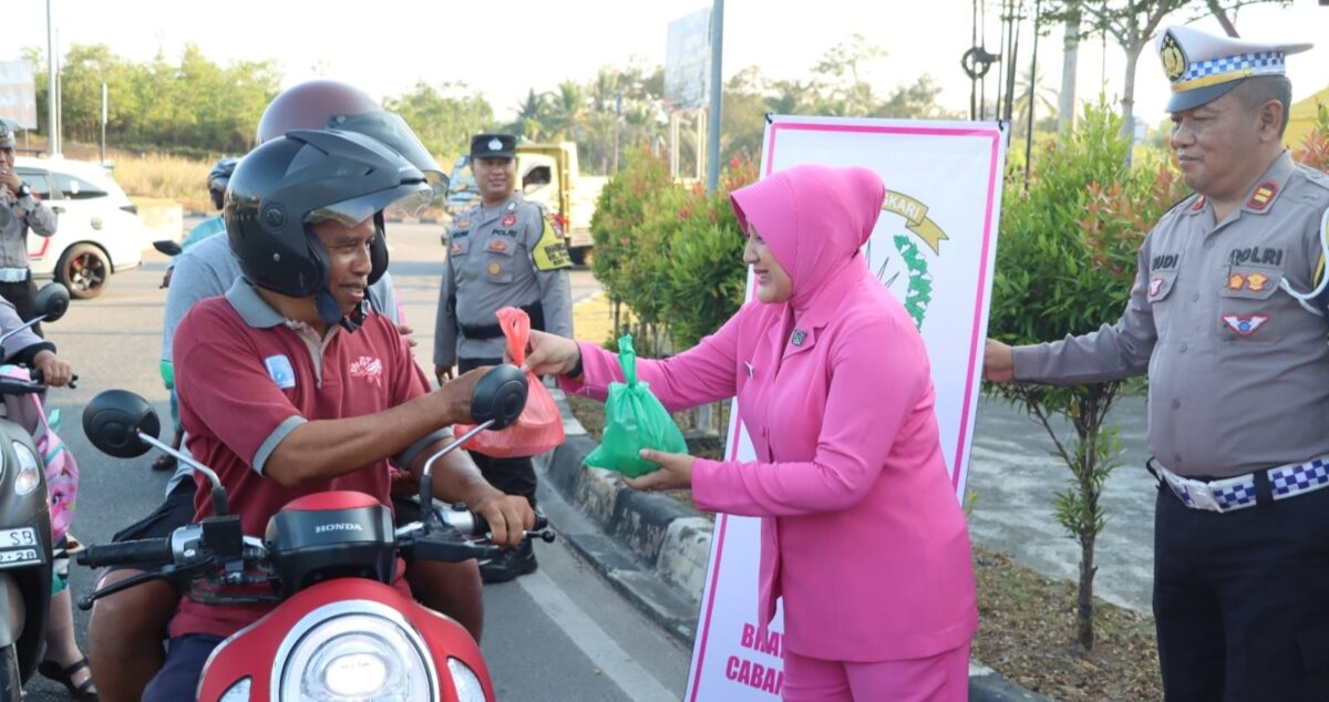 METROBATAM.COM, BINTAN – Ibu-ibu Bhayangkari Cabang Bintan membagikan takjil berbuka puasa dan sembako kepada pengguna jalan yang melintas di persimpangan Kilometer 16, jalan Lintas Barat, tepatnya di desa Toapaya Selatan, Kecamatan Gunung Kijang, Kepulauan Riau. Kegiatan ini digelar sebagai wujud kepedulian Bhayangkari di bulan ramadan tahun 2024.