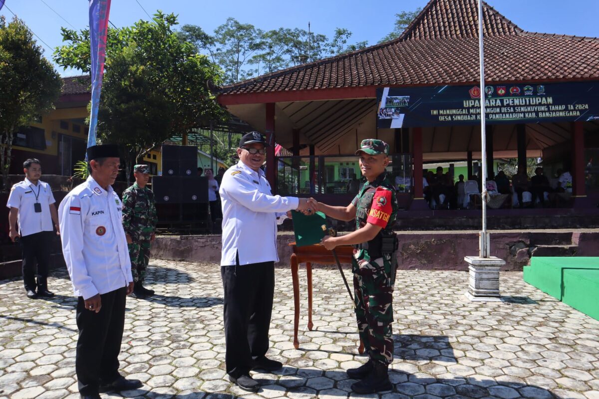 METROBATAM.COM, BANJARNEGARA – Pj Bupati Banjarnegara Tri Harso Widirahmanto SH, bersama Dandim 0704/Banjarnegara, Letkol Czi Teguh Prasetyo secara resmi menutup kegiatan TNI Manunggal Membangun Desa (TMMD) Sengkuyung Tahap I tahun 2024 di Desa Sinduaji, Kecamatan Pandanarum, Rabu (20/3/2024).