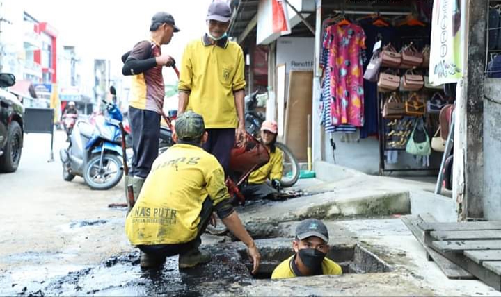 Disela – sela pemantauan, Penjabat Bupati H. Herman, SE, MT menyampaikan apresiasinya atas kinerja yang dilakukan oleh Dinas PUTR kabupaten Inhil dalam membersihkan drainase / saluran air di dalam Kota Tembilahan.