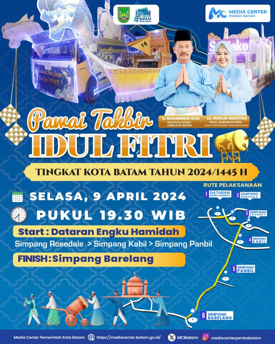 METROBATAM.COM, BATAM – Pemerintah Kota (Pemko) Batam akan menggelar Pawai Takbir Keliling untuk memeriahkan malam penyambutan Idul Fitri 1445 Hijriah.
